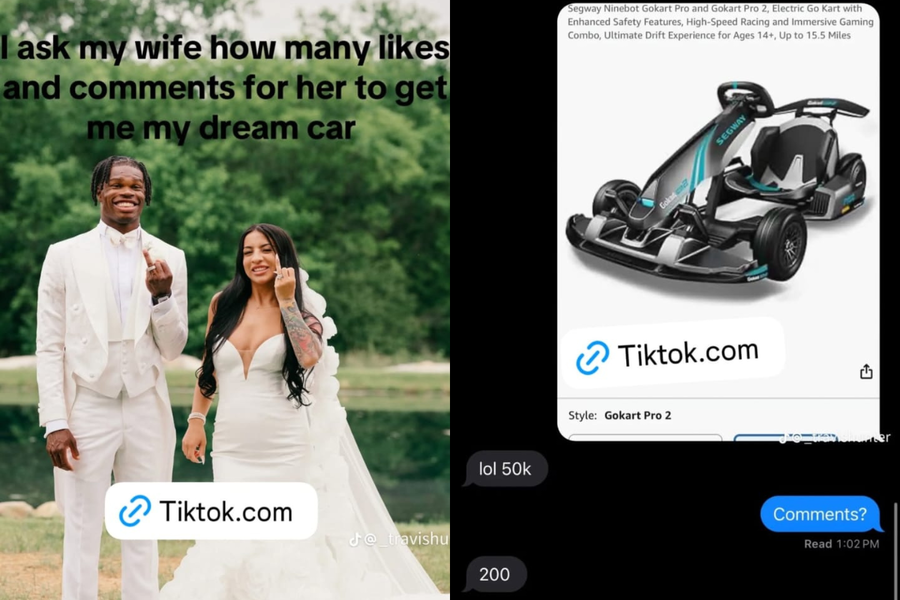 Travis Hunter took to IG to share a picture of his wedding day, a sneak peek at his newly wedded bliss. And he also posed a question to his wife. Travis Hunter wants a dream car. And it’s not something you’d expect at first glance. In his IG story, above the couple flaunting their wedding ring to the camera, Hunter wrote, “I ask my wife how many likes and comments for her to get me my dream car.” The car, as it turns out, is the Segway Ninebot Gokart Pro 2. It’s a cart that comes with a 26.7 mph Race Mode. It can also be personalized with ECO, Sport, and Manual Modes, as per Amazon. So what will it take for Travis Hunter to land his dream car? As Leanna Lenee put it, the toll to be paid for this dream car is 50k likes and 200 comments.