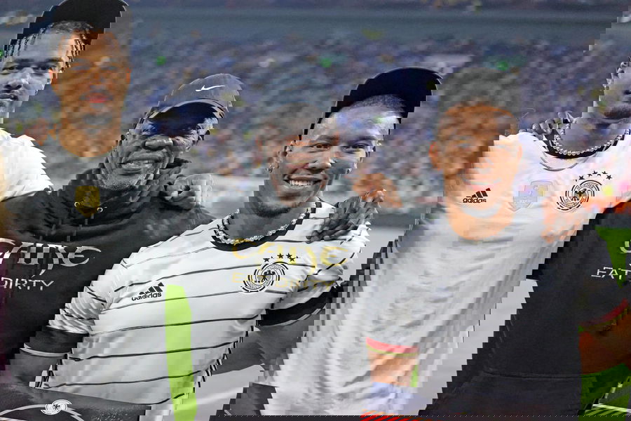 20.06.23 Deutschland – Kolumbien Deutschland, Gelsenkirchen, 20.06.2023, Fussball, FIFA, Freundschaftsspiel, DFB Deutschland – Kolumbien: v.l. Equanimeous St. Brown, John Brown Vater, Amon-Ra St. Brown. *** 20 06 23 Germany Colombia Germany, Gelsenkirchen, 20 06 2023, football, FIFA, friendly match, DFB Germany Colombia v l Equanimeous St Brown, John Brown father , Amon Ra St Brown.