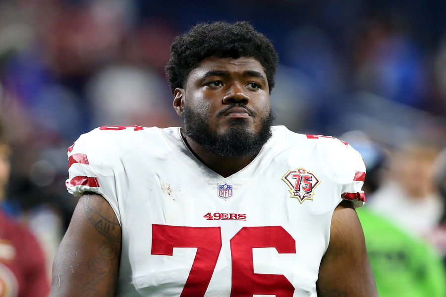 San Francisco 49ers vs Detroit Lions San Francisco 49ers offensive tackle Jaylon Moore 76 walks off the field after the conclusion of an NFL, American Football Herren, USA football game against the Detroit Lions in Detroit, Michigan USA, on Sunday, September 12, 2021. Detroit Michigan United States lemus-sanfranc210912_npIPK PUBLICATIONxNOTxINxFRA Copyright: xJorgexLemusx
