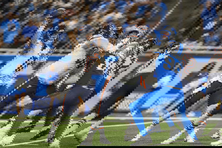 DETROIT, MI – SEPTEMBER 14: Chicago Bears QB Tyson Bagent 17 in the pocket during the game between Chicago Bears and Detroit Lions on September 14, 2025 at Ford Field in Detroit, MI /CSM Detroit United States – ZUMAc04_ 20250914_zma_c04_560 Copyright: xAllanxDranbergx
