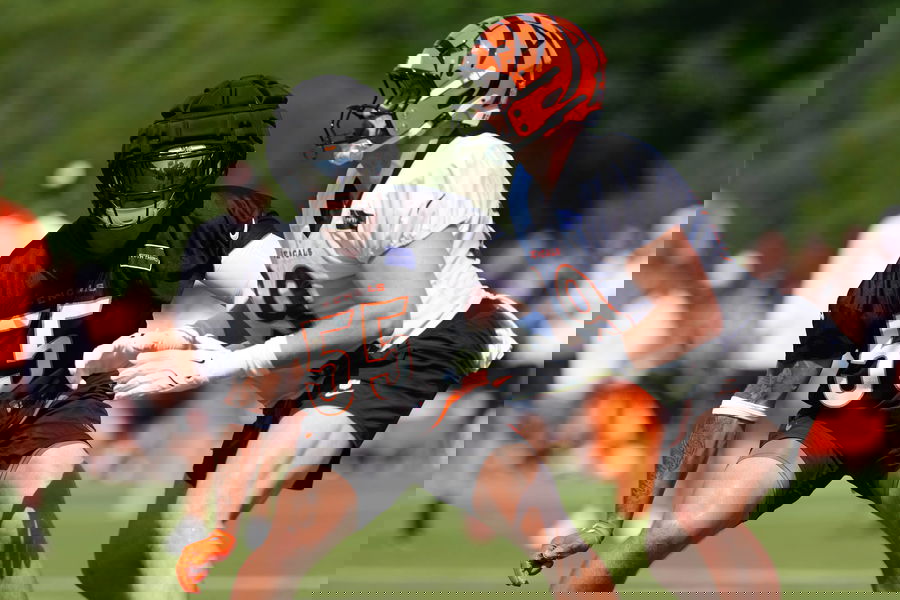 NFL, American Football Herren, USA Cincinnati Bengals Training Camp Jul 25, 2025 Cincinnati, OH, USA Cincinnati Bengals linebacker Logan Wilson 55 defends against tight end Drew Sample 89 during training camp practice. Cincinnati OH USA, EDITORIAL USE ONLY PUBLICATIONxINxGERxSUIxAUTxONLY Copyright: xKareemxElgazzarx 20250725_map_zp6_45
