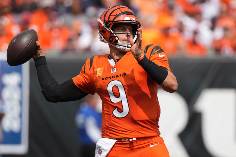 CINCINNATI, OHIO – SEPTEMBER 08: Joe Burrow #9 of the Cincinnati Bengals throws the ball during the second half against the New England Patriots at Paycor Stadium on September 08, 2024 in Cincinnati, Ohio. (Photo by Jason Mowry/Getty Images)