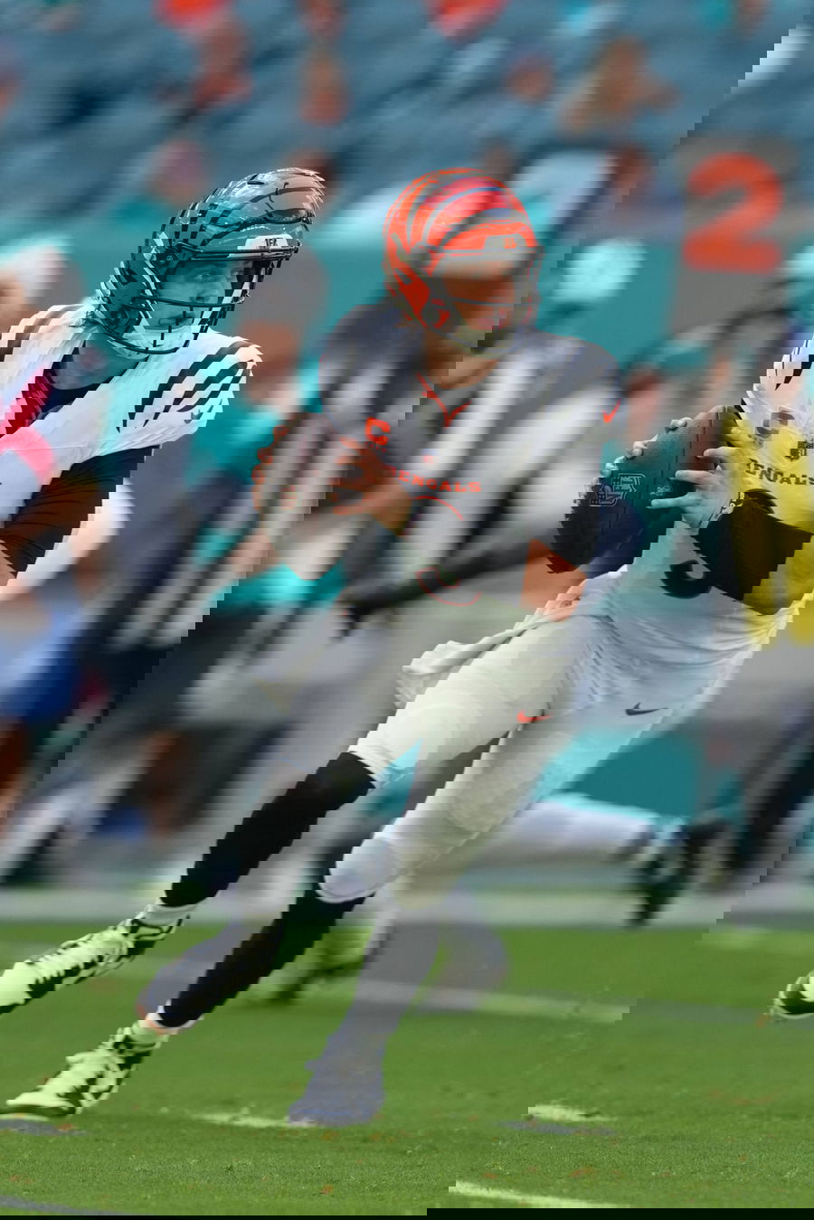 MIAMI GARDENS, FL – DECEMBER 21: Cincinnati Bengals quarterback Joe Burrow 9 prepares to take the field during the game between the Cincinnati Bengals and the Miami Dolphins on Sunday, December 21, 2025 at Hard Rock Stadium in Miami Gardens, FL Photo by Peter Joneleit/Icon Sportswire NFL, American Football Herren, USA DEC 21 Bengals at Dolphins EDITORIAL USE ONLY Icon251221017