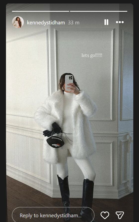 Kennedy Stidham wrote, “Let’s Go!!!!!!” as she shared an Instagram story ahead of the AFC Championship game.