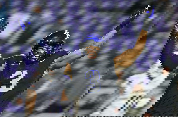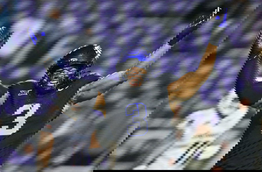 November 29, 2025: TCU Horned Frogs linebacker Kaleb Elarms-Orr celebrates after making a sack during the fourth quarter of a college football game against the Cincinnati Bearcats at Amon G. Carter Stadium in Fort Worth, TX. Austin McAfee/CSM Fort Worth United States – ZUMAc04_ 20251129_zma_c04_288 Copyright: xAustinxMcafeex