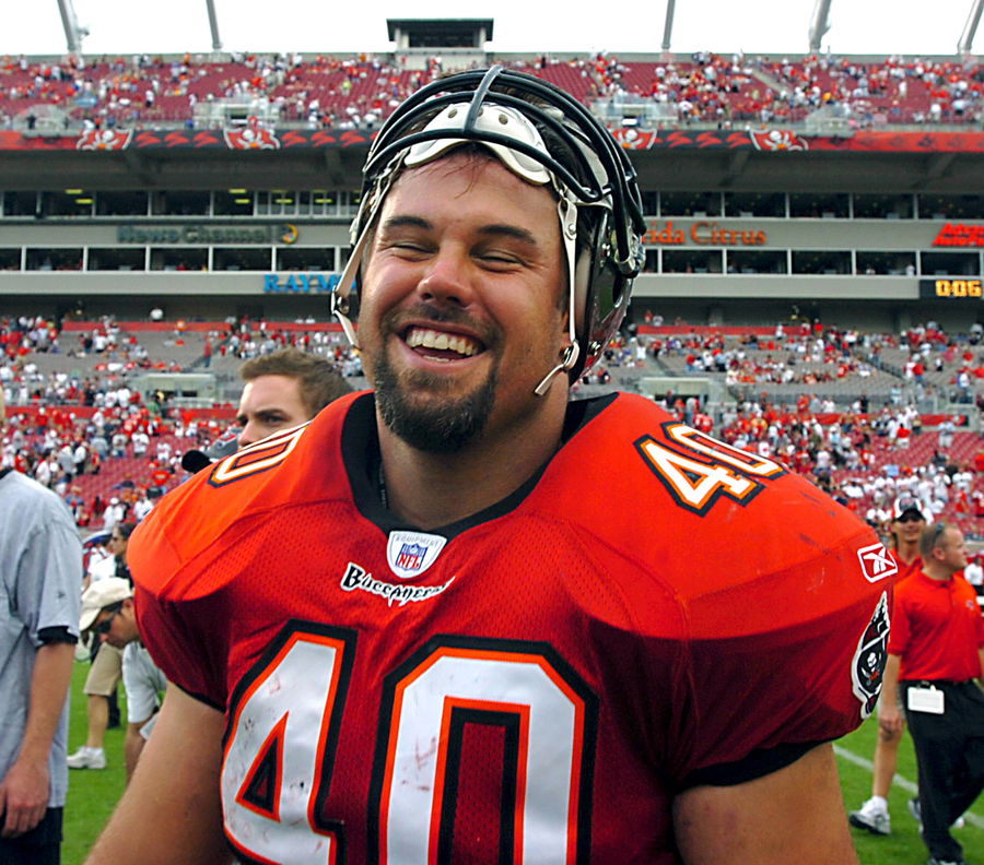 Mike Alstott (Tampa Bay Buccaneers) gut gelaunt – PUBLICATIONxINxGERxSUIxAUTxHUNxONLY (TAM2006123104); Vdig, quer, close, lachen, lächeln NFL 2006/2007 Tampa American Football Herren Mannschaft USA Einzelbild optimistisch Randmotiv Personen