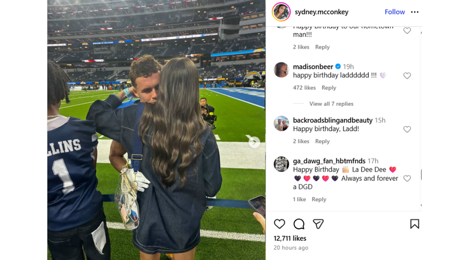 Madison Beer comments on Ladd’s birthday post (Image via Instagram @sydney.mcconkey)