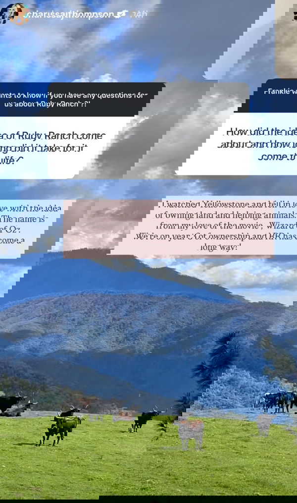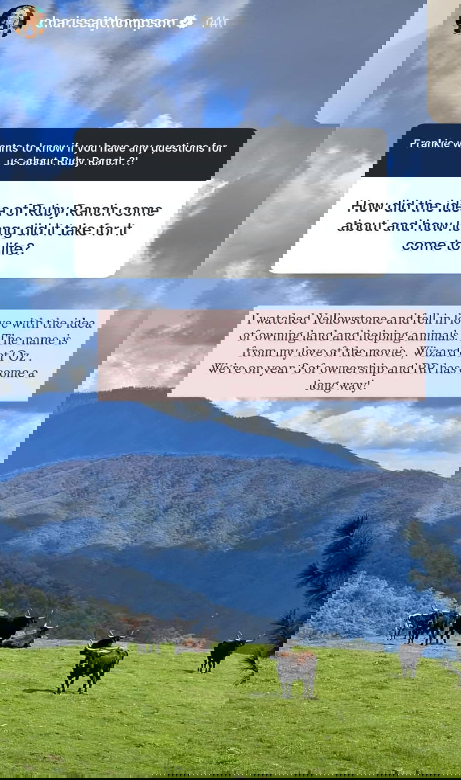 Thompson recently opened up on Instagram about the origin story of Ruby Ranch, her $1.4 million slice of country life. When a follower asked how the idea came about, Thompson dressed up her answer with a beautiful picture of the mountain scenery from her ranch in an Instagram story.