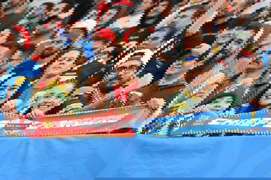 September 5, 2025, Sao Paulo, Sao Paulo, Brazil: Brazilian NFL, American Football Herren, USA fans cheer from the stands during the NFL game between Los Angeles Chargers and Kansas City Chiefs at Corinthians Arena on September 5, 2025 in Sao Paulo, Brazil. /PxImages Sao Paulo Brazil – ZUMAp175 20250905_zsa_p175_151 Copyright: xLeandroxBernardesx