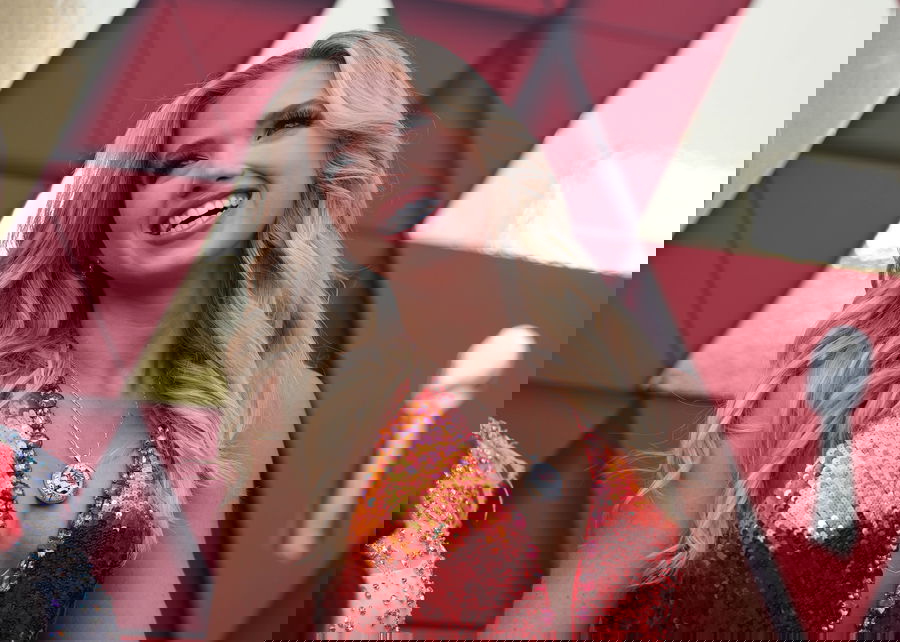 KANSAS CITY, MO – JUNE 15: Gracie Hunt wearing a Super Bowl LIV pendant on the Red Carpet before the Super Bowl Championship Ring Ceremony on June 15, 2023 at Union Station in Kansas City, MO. Photo by Scott Winters/Icon Sportswire NFL, American Football Herren, USA JUN 15 Kansas City Chiefs Super Bowl Championship Ring Ceremony EDITORIAL USE ONLY Icon2306150985