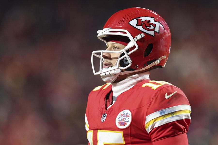 KANSAS CITY, MO – DECEMBER 07: Kansas City Chiefs quarterback Patrick Mahomes 15 after throwing an interception late in the fourth quarter of an NFL, American Football Herren, USA game between the Houston Texans and Kansas City Chiefs on December 7, 2025 at GEHA Field at Arrowhead Stadium in Kansas City, MO. Photo by Scott Winters/Icon Sportswire NFL: DEC 07 Texans at Chiefs EDITORIAL USE ONLY Icon2512071839