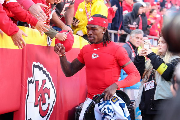 November 23, 2025: Kansas City Chiefs wide receiver Rashee Rice 4 interacts with fans after an NFL, American Football Herren, USA football game against the Indianapolis Colts at GEHA Field at Arrowhead Stadium in Kansas City, MO. /CSM Kansas City United States of America – ZUMAc04_ 20251123_zma_c04_279 Copyright: xDavidxSmithx