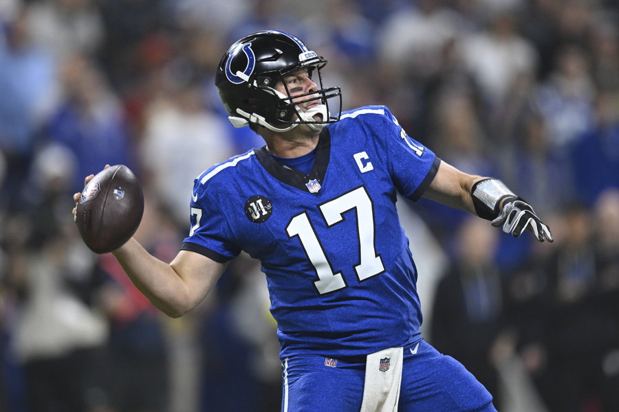 INDIANAPOLIS, IN – DECEMBER 22: Indianapolis Colts Quarterback Daniel Jones 17 passes during the NFL, American Football Herren, USA game between the San Francisco 49ers and the Indianapolis Colts on December 22, 2025, at Lucas Oil Stadium in Indianapolis, Indiana. Photo by Michael Allio/Icon Sportswire NFL: DEC 22 49ers at Colts EDITORIAL USE ONLY Icon116251222007