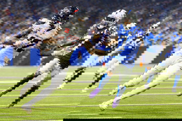 November 30, 2025: Houston Texans wide receiver Nico Collins 12 runs with the ball after the catch as Indianapolis Colts defensive back Charvarius Ward 7 pursues during NFL, American Football Herren, USA game action at Lucas Oil Stadium in Indianapolis, Indiana. /CSM Indianapolis United States of America – ZUMAc04_ 20251130_zma_c04_092 Copyright: xJohnxMersitsx