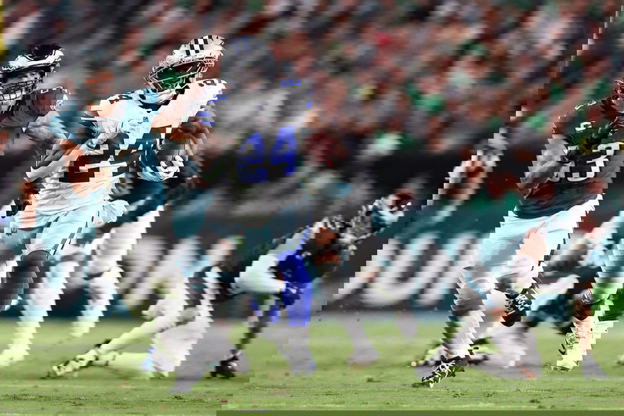 NFL, American Football Herren, USA Dallas Cowboys at Philadelphia Eagles Sep 4, 2025 Philadelphia, Pennsylvania, USA Dallas Cowboys running back Miles Sanders 24 carries the ball against the Philadelphia Eagles during the third quarter of the game at Lincoln Financial Field. Philadelphia Lincoln Financial Field Pennsylvania USA, EDITORIAL USE ONLY PUBLICATIONxINxGERxSUIxAUTxONLY Copyright: xBillxStreicherx 20250904_hlf_sq4_141