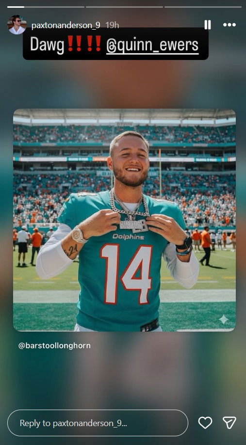 A stunning rookie performance from Miami’s Quinn Ewers didn’t just earn him his first NFL win. It also caught the eye of Cowboys royalty. The Miami Dolphins experienced a very special first in a tough win against the Buccaneers. The victory marked Quinn Ewers’ first victory in Dolphin Colors. This effort did not go unnoticed, as Cowboys owner Jerry Jones’ grandson, Paxton Anderson, appreciated the young QB’s performance.