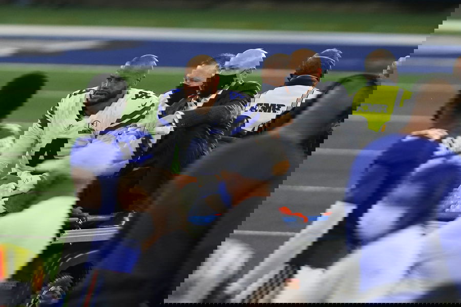 NFL, American Football Herren, USA New York Giants at Dallas Cowboys Oct 11, 2020 Arlington, Texas, USA Dallas Cowboys quarterback Dak Prescott 4 leaves the field with an injury in the third quarter against the New York Giants at AT&T Stadium. Arlington AT&T Stadium Texas USA, EDITORIAL USE ONLY PUBLICATIONxINxGERxSUIxAUTxONLY Copyright: xTimxHeitmanx 15054913