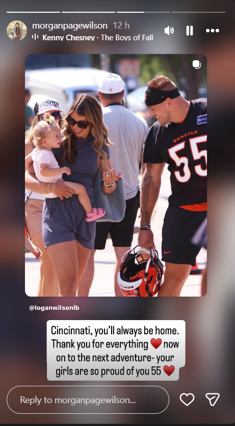 “Cincinnati, you’ll always be home. Thank you for everything 🧡 now on to the next adventure- your girls are so proud of you 55 🧡.” Morgan Wilson posted on her Instagram story.