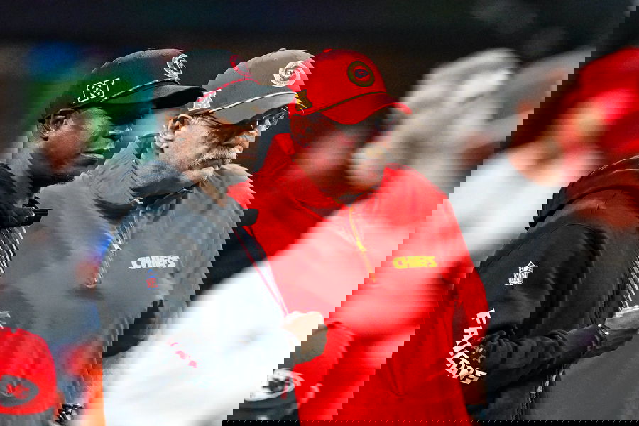 ATLANTA, GA Ð SEPTEMBER 22: Atlanta head coach Raheem Morris and Kansas City head coach Andy Reid talk prior to the start of the NFL, American Football Herren, USA game between the Kansas City Chiefs and the Atlanta Falcons on September 22nd, 2024 at Mercedes-Benz Stadium in Atlanta, GA. Photo by Rich von Biberstein/Icon Sportswire NFL: SEP 22 Chiefs at Falcons EDITORIAL USE ONLY Icon240922091