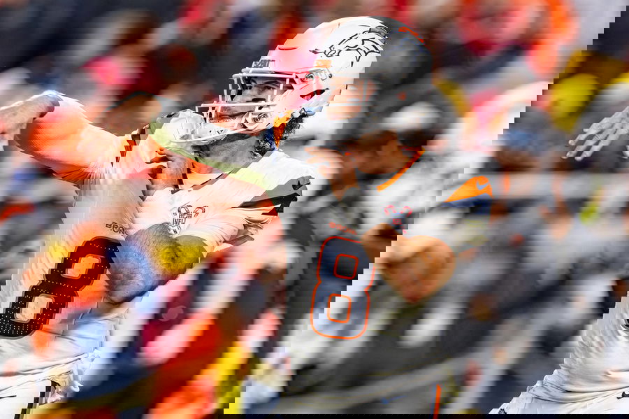 December 25, 2025 Kansas City, MO. U.S. – Denver Broncos quarterback Jarrett Stidham 8 in pregame workout before a week 17 National Football League football game between Denver Broncos and the Kansas City Chiefs on GEHA Field at Arrowhead Stadium in Kansas City MO..Denver won 20-13.Attendance: 73405. /Cal Media Kansas City United States of America – ZUMAc04_ 20251225_zma_c04_170 Copyright: xMichaelxSpomerx