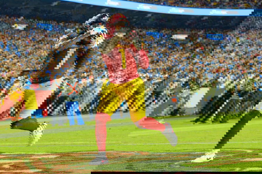 2025 NFL, American Football Herren, USA Regular Season: Detroit Lions at Washington Commanders Washington Commanders Wide Receiver Deebo Samuel 1 catching touchdown pass in second half during the NFL regular season game at Northwest Stadium in Landover Maryland on November 9, 2025. The Detroit Lions defeated the Washington Commanders 44-22 Jeff Scudder / Image of Landover Maryland United States EDITORIAL USE ONLY Copyright: x xJeffxScudderx JeffxScudderx iosphotos385295