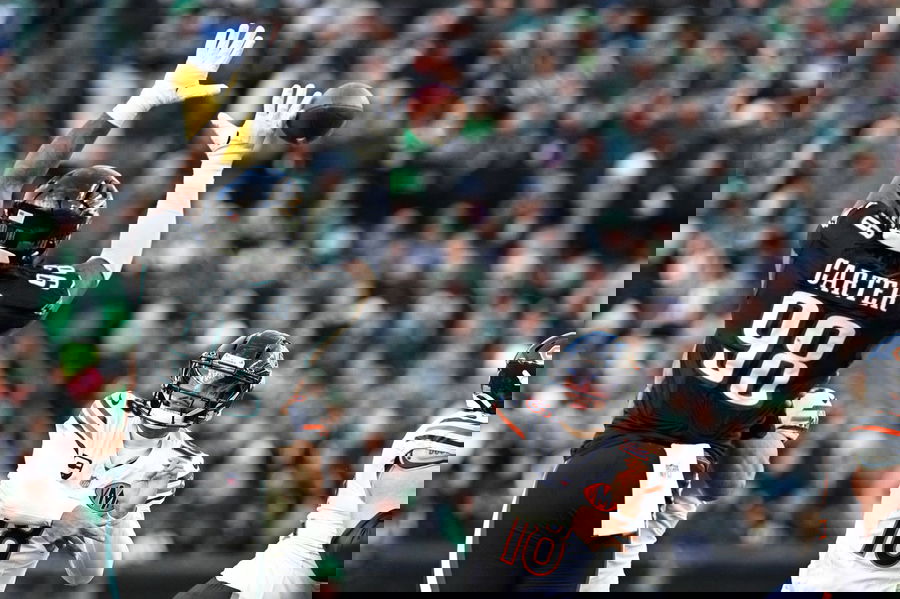 PHILADELPHIA, PA – NOVEMBER 28: Philadelphia Eagles defensive tackle Jalen Carter 98 tips the pass from Chicago Bears quarterback Caleb Williams 18 during the game between the Chicago Bears and the Philadelphia Eagles on November 28th, 2025 at Lincoln Financial Field in Philadelphia, PA. Photo by Terence Lewis/Icon Sportswire NFL, American Football Herren, USA NOV 28 Bears at Eagles EDITORIAL USE ONLY Icon251128086