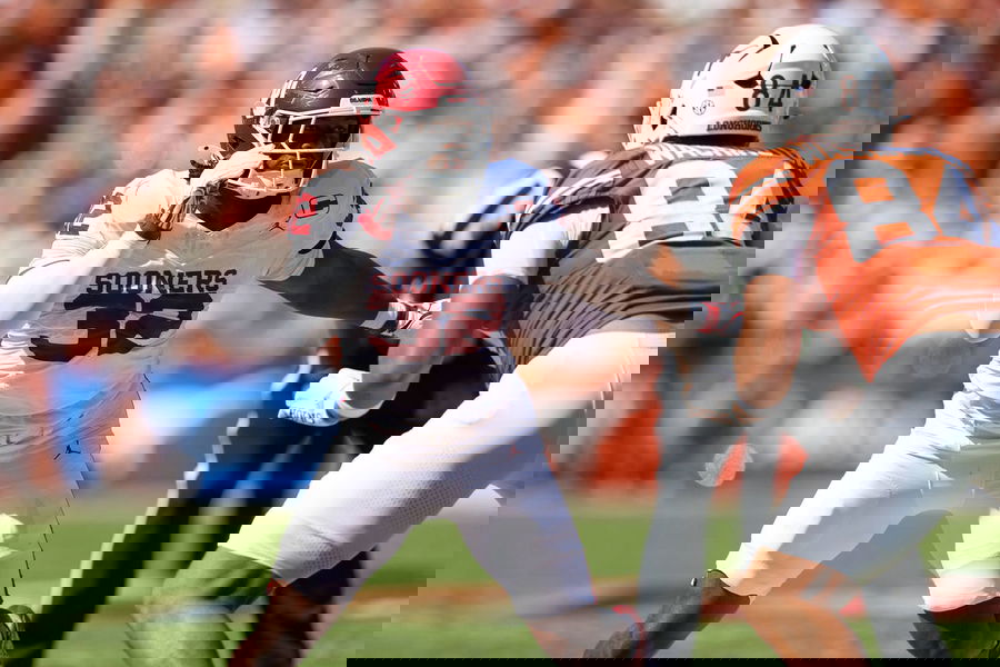 October 11, 2025: Oklahoma Sooners defensive lineman R Mason Thomas 32 rushes the quarterback during the Allstate Red River Rivalry game between the Oklahoma Sooners and the Texas Longhorns at the Cotton Bowl Stadium in Dallas, Texas. / CSM Dallas United States of America – ZUMAc04_ 20251011_zma_c04_153 Copyright: xFreddiexBeckwithx