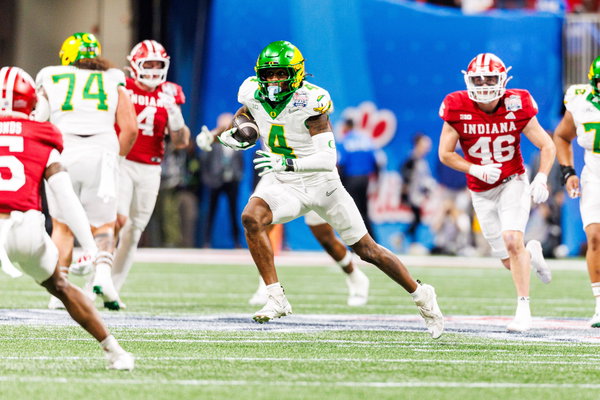 January 09, 2025: Oregon wide receiver Malik Benson 4 runs with the ball during NCAA, College League, USA football game action between the Oregon Ducks and the Indiana Hoosiers at Mercedes-Benz Stadium in Atlanta, Georgia. /CSM Atlanta United States of America – ZUMAc04_ 20260109_zma_c04_199 Copyright: xJohnxMersitsx