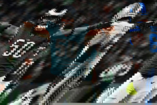 NFL, American Football Herren, USA Detroit Lions at Philadelphia Eagles Nov 16, 2025 Philadelphia, Pennsylvania, USA Philadelphia Eagles linebacker Jaelan Phillips 50 reacts after sacking Detroit Lions quarterback Jared Goff 16 during the first half at Lincoln Financial Field. Philadelphia Lincoln Financial Field Pennsylvania USA, EDITORIAL USE ONLY PUBLICATIONxINxGERxSUIxAUTxONLY Copyright: xEricxHartlinex 20251116_mcd_se7_26