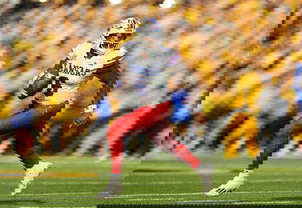 NCAA, College League, USA Football: Kansas at Missouri Sep 6, 2025 Columbia, Missouri, USA Kansas Jayhawks quarterback Jalon Daniels 6 rolls out to pass during the second half against the Missouri Tigers at Faurot Field at Memorial Stadium. Columbia Faurot Field at Memorial Stadium Missouri USA, EDITORIAL USE ONLY PUBLICATIONxINxGERxSUIxAUTxONLY Copyright: xJayxBiggerstaffx 20250906_jdb_ba4_032