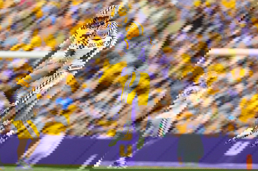 NCAA, College League, USA Football: Florida at Louisiana State Sep 13, 2025 Baton Rouge, Louisiana, USA LSU Tigers cornerback Mansoor Delane 4 reacts to Florida Gators quarterback DJ Lagway not pictured making an incomplete pass during the first half at Tiger Stadium. Baton Rouge Tiger Stadium Louisiana USA, EDITORIAL USE ONLY PUBLICATIONxINxGERxSUIxAUTxONLY Copyright: xStephenxLewx 20250913_lbm_la1_191