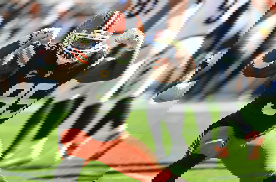 NFL, American Football Herren, USA Cincinnati Bengals at Cleveland Browns Sep 7, 2025 Cleveland, Ohio, USA Cleveland Browns defensive end Myles Garrett 95 celebrates after a play during the second half against the Cincinnati Bengals at Huntington Bank Field. Cleveland Huntington Bank Field Ohio USA, EDITORIAL USE ONLY PUBLICATIONxINxGERxSUIxAUTxONLY Copyright: xKenxBlazex 20250907_jhp_bk4_0507