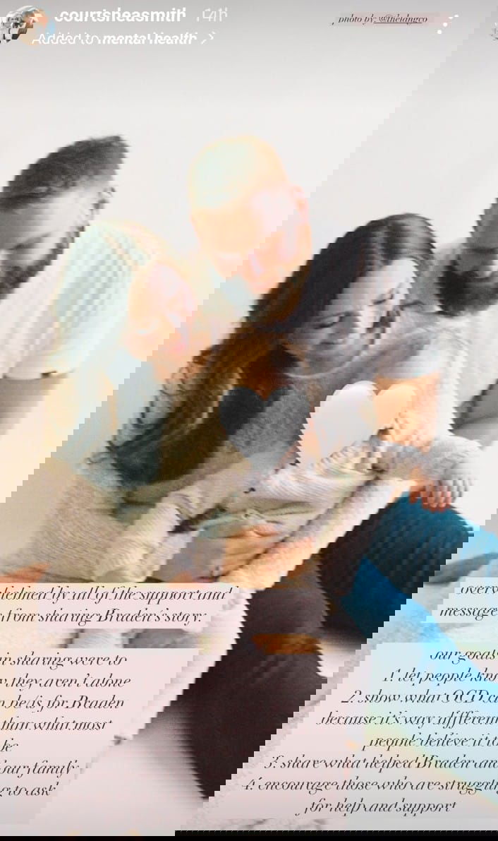 Courtney shared an emotional message with fans this week… After publicly revealing Braden’s battle with OCD, she took to Instagram to thank the flood of supporters: “Overwhelmed by all of the support… our goals in sharing were to… let people know they aren’t alone. 2) Show what OCD can be, is for Braden because it’s way different from what most people believe it to be. 3) Share what helped Braden and our family. 3) Encourage those who are struggling to ask for help and support.”