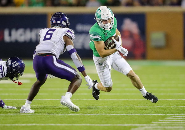 September 07, 2024:.North Texas Mean Green wide receiver Landon Sides 22 runs the ball as Stephen F. Austin Lumberjacks cornerback Charles Demmings 6 readies to make the tackle during the 3rd quarter of the NCAA, College League, USA Football game between Stephen F Austin University and the University of North Texas at DATCU Stadium in Denton, TX. /CSM Denton USA – ZUMAc04_ 20240907_zma_c04_650 Copyright: xRonxLanex