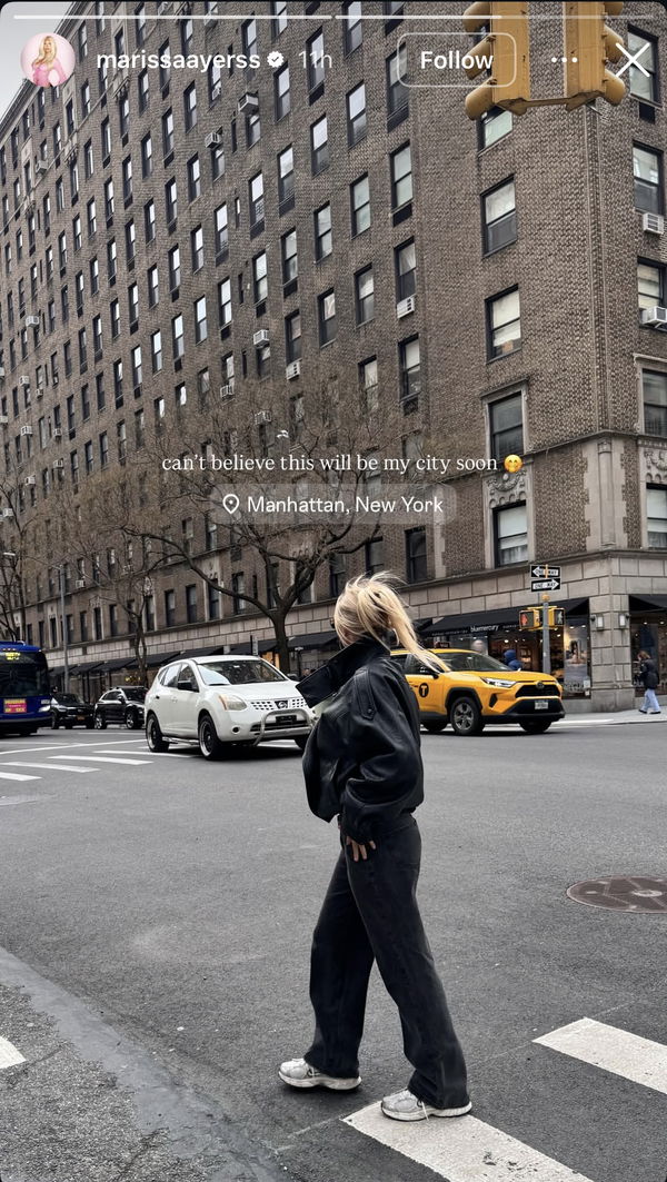 “Can’t believe this will be my city soon 🤭,” Ayers wrote alongside a classic snapshot from the streets of Manhattan.