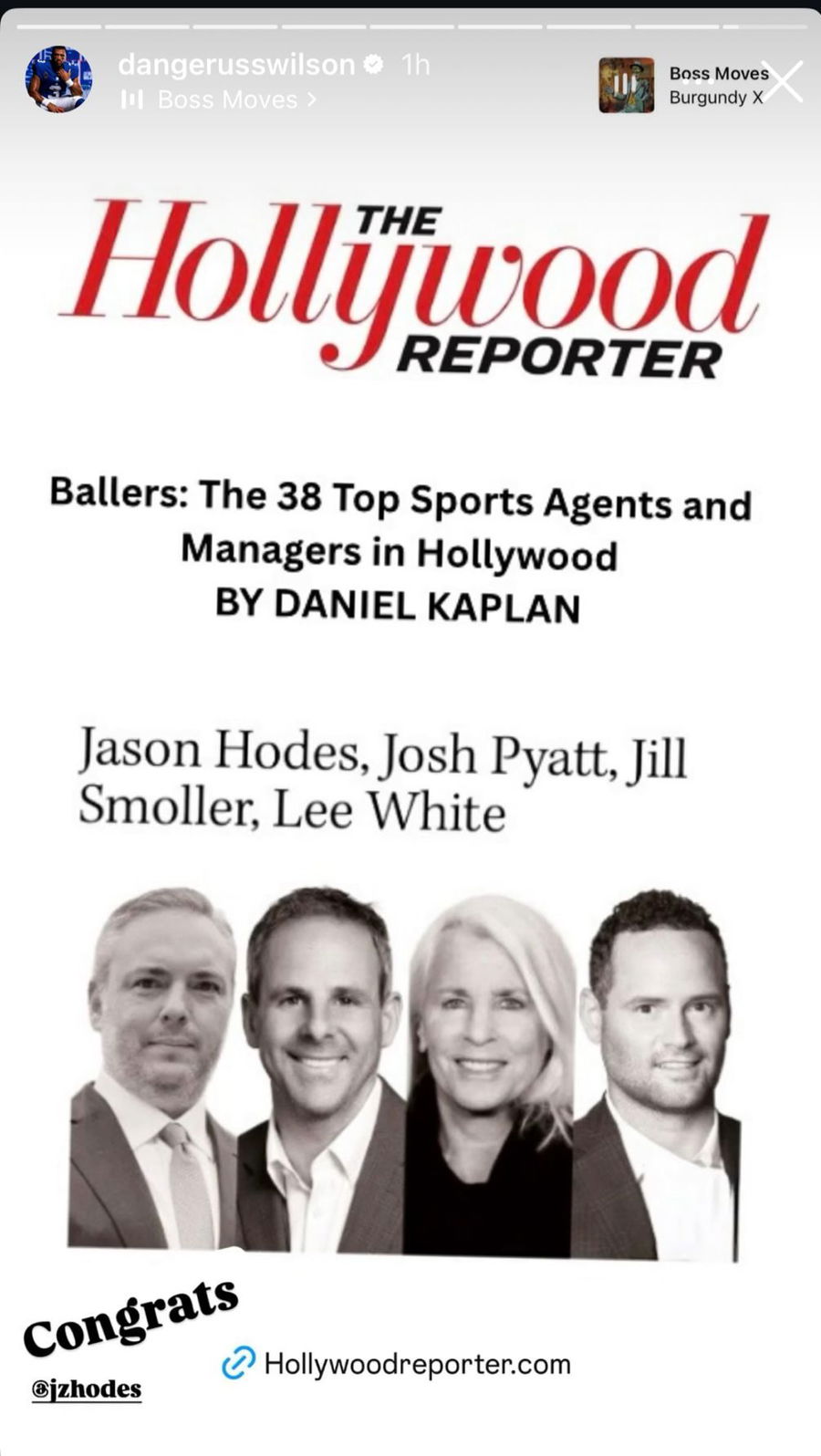 Saturday brought a touching moment when Russell Wilson celebrated his agent’s major recognition. The quarterback shared The Hollywood Reporter’s front page featuring “38 Top Sports Agents” on his Instagram story. Jason Hodes, Josh Pyatt, Jill Smoller, and Lee White all made the prestigious list, but Wilson singled out one name specifically. “Congrats,” he wrote, tagging Jason Hodes directly. The personal shoutout highlighted their strong professional relationship at WME.