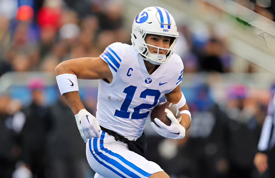 In 2021, he led BYU with 43 catches for 805 yards and six touchdowns. Injuries hit in 2022, but he still put up 48 receptions for 625 yards and five touchdowns while adding 357 rushing yards and five more scores on the ground. His Boise State game with 14 catches for 157 yards and two touchdowns, plus the game-winner, was pure clutch.
