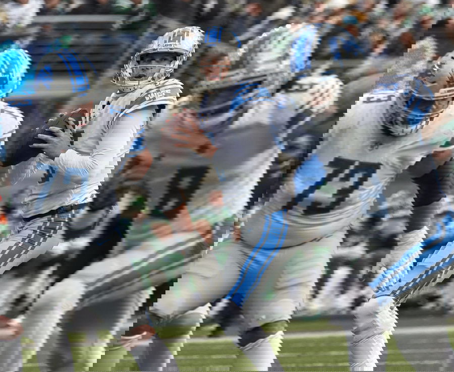 NFL, American Football Herren, USA 2022: Lions vs Jets Dec 18 Detroit Lions quarterback Jared Goff 16 looks to pass during a NFL game against the New York Jets on Sunday, Dec. 18, 2022. Duncan Williams/CSM East Rutherford New Jersey United States EDITORIAL USE ONLY Copyright: xx ZUMA-20221218_zaf_c04_062.jpg DuncanxWilliamsx csmphotothree021107