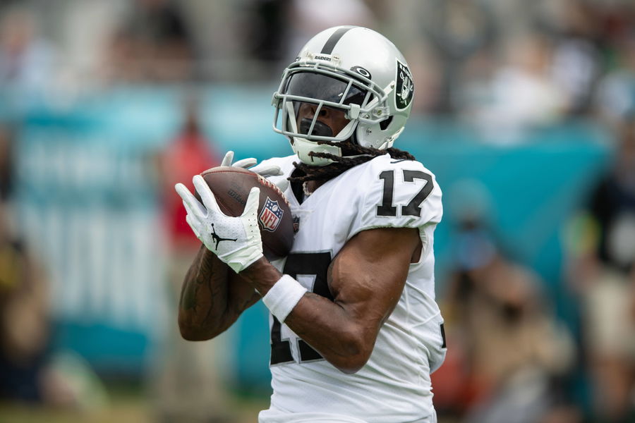 NFL, American Football Herren, USA Las Vegas Raiders at Jacksonville Jaguars Nov 6, 2022 Jacksonville, Florida, USA Las Vegas Raiders wide receiver Davante Adams 17 catches a touchdown against the Jacksonville Jaguars in the second quarter at TIAA Bank Field. Jacksonville TIAA Bank Field Florida USA, EDITORIAL USE ONLY PUBLICATIONxINxGERxSUIxAUTxONLY Copyright: xJeremyxReperx 20221106_sjb_vd7_240