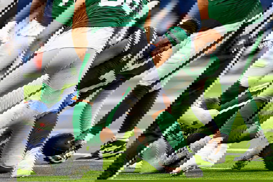 Denver Broncos v New York Jets International Series 12/10/2025. International Series New York Jets Quarterback Justin Fields 7 is sacked and loses helmet during the International Series match between Denver Broncos and New York Jets at Tottenham Hotspur Stadium, London, United Kingdom on 12 October 2025. London Tottenham Hotspur Stadium London United Kingdom Editorial use only , Copyright: xManjitxNarotrax PSI-23017-0181