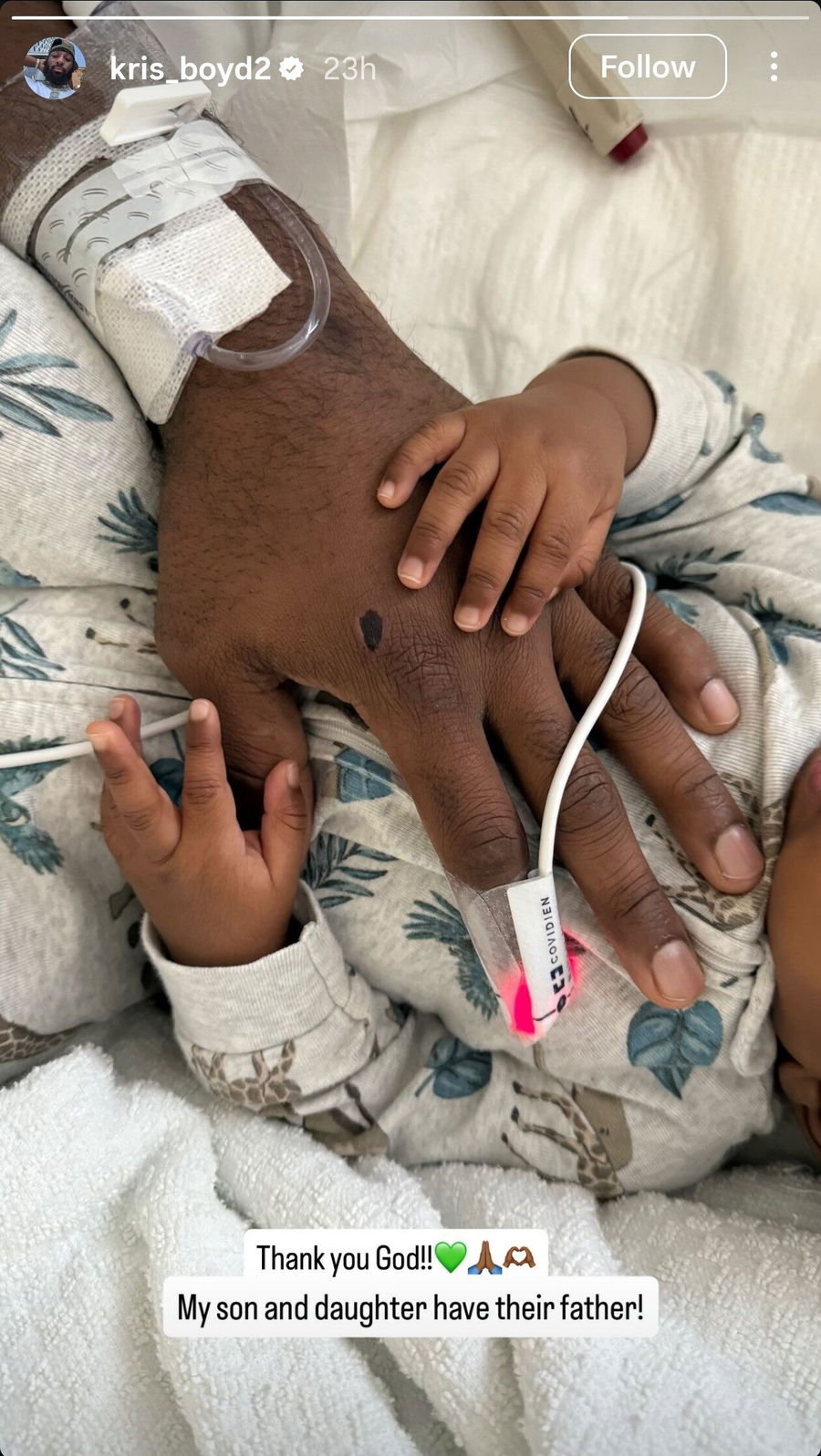 “Thank you God!! 💚🙏🏾🫶🏽 My son and daughter have their father!” Boyd wrote in the story.