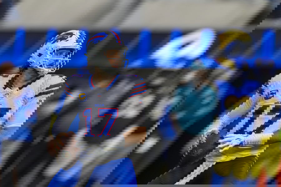 INGLEWOOD, CA – DECEMBER 08: Buffalo Bills quarterback Josh Allen 17 drops back looking to throw a pass in the first half of an NFL, American Football Herren, USA football game between the Buffalo Bills and Los Angeles Rams at SoFi Stadium, December 8, 2024, in Inglewood, California. Photo by Tony Ding/Icon Sportswire NFL: DEC 08 Bills at Rams EDITORIAL USE ONLY Icon46520241208057