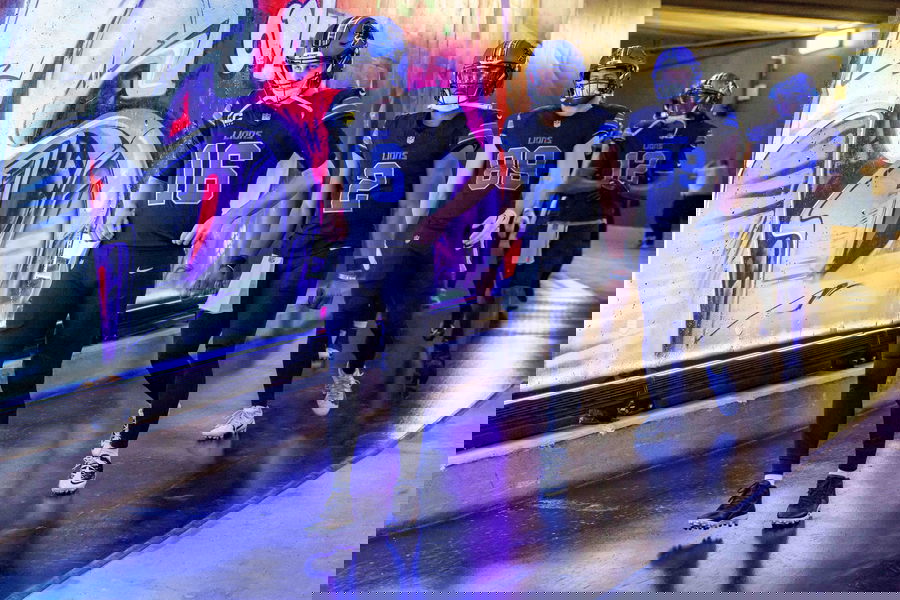 NFL, American Football Herren, USA Minnesota Vikings at Detroit Lions Jan 5, 2025 Detroit, Michigan, USA Detroit Lions quarterback Jared Goff 16, quarterback Hendon Hooker 2 and running back Craig Reynolds 13 walk out to the field for warm ups before the game against the Minnesota Vikings at Ford Field. Detroit Ford Field Michigan USA, EDITORIAL USE ONLY PUBLICATIONxINxGERxSUIxAUTxONLY Copyright: xDavidxReginekx 20250105_ajw_kd7_069