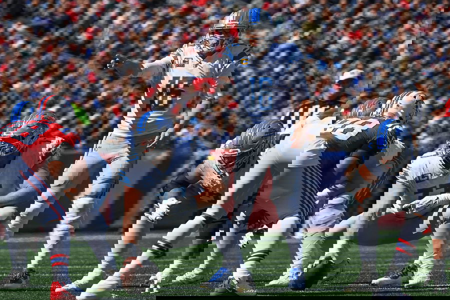 NFL, American Football Herren, USA 2022: Lions vs Patriots OCT 09 Oct 9, 2022 Foxborough, Massachusetts, USA Detroit Lions quarterback Jared Goff 16 signals to the offense during the first half against the New England Patriots at Gillette Stadium, in Foxborough, Massachusetts. Eric Canha/CSM Foxborough Massachusetts USA EDITORIAL USE ONLY Copyright: xx ZUMA-20221009_zaf_c04_296.jpg EricxCanhax csmphototwo982339