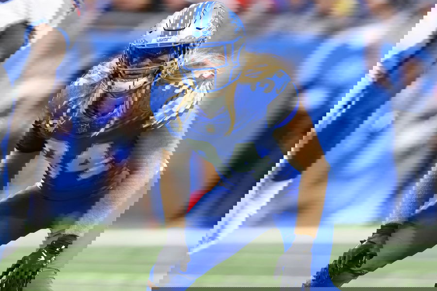 MINNEAPOLIS, MN – OCTOBER 20: Detroit Lions linebacker Alex Anzalone 34 looks on before the NFL, American Football Herren, USA game between the Detroit Lions and the Minnesota Vikings on October 20, 2024, at U.S. Bank Stadium in Minneapolis, MN. Photo by Bailey Hillesheim/Icon Sportswire NFL: OCT 20 Lions at Vikings EDITORIAL USE ONLY Icon241020072