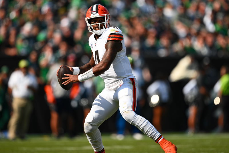 Sport Bilder des Tages NFL, American Football Herren, USA New York Giants at Cleveland Browns Sep 22, 2024 Cleveland, Ohio, USA Cleveland Browns quarterback Deshaun Watson 4 walks off the field before the game between the Browns and the New York Giants at Huntington Bank Field. Cleveland Huntington Bank Field Ohio USA, EDITORIAL USE ONLY PUBLICATIONxINxGERxSUIxAUTxONLY Copyright: xKenxBlazex 20240922_kab_bk4_0006
