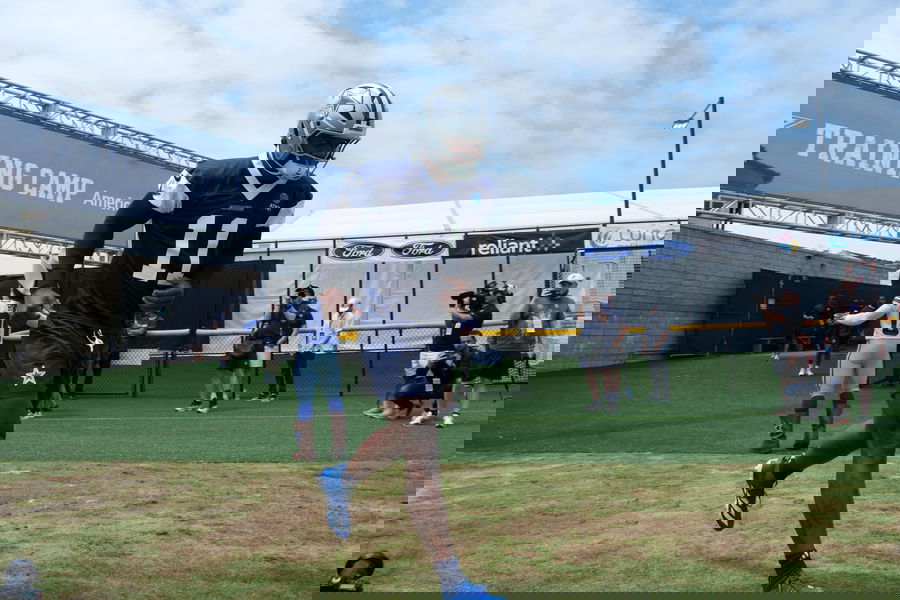 NFL, American Football Herren, USA Dallas Cowboys Training Camp Jul 22, 2025 Oxnard, CA, USA Dallas Cowboys defensive end Micah Parsons 11 enters the field during training camp at the River Ridge Fields. Oxnard River Ridge Fields California United States, EDITORIAL USE ONLY PUBLICATIONxINxGERxSUIxAUTxONLY Copyright: xKirbyxLeex 20250722_mcd_al2_1