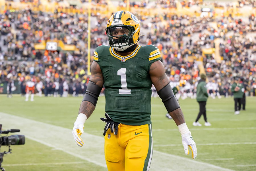 December 7, 2025: Green Bay Packers defensive end Micah Parsons 1 walks to the sidelines during warm ups before the game against the Chicago Bears in Green Bay, WI. Packers defeated Bears, 28-21. /Cal Media. Green Bay United States of America – ZUMAc04_ 20251207_zma_c04_499 Copyright: xKirstenxSchmittx