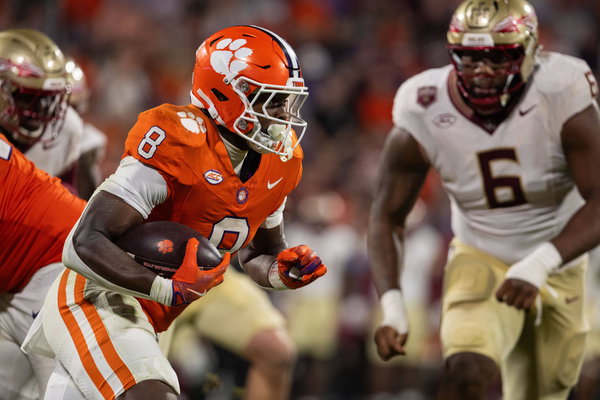 NCAA, College League, USA Football 2025: Florida State At Clemson Nov 08 November 8, 2025: Clemson Tigers running back Adam Randall 8 runs the ball against the Florida State Seminoles in the second half of the NCAA Football matchup at Memorial Stadium in Clemson, SC. Scott Kinser/CSM Credit Image: Scott Kinser/Cal Media Clemson Sc United States EDITORIAL USE ONLY Copyright: xx ZUMA-20251108_zma_c04_250.jpg ScottxKinserx csmphotothree440233