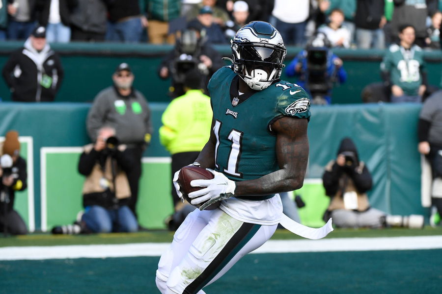 Philadelphia, PA – JANUARY 11: Philadelphia Eagles wide receiver A.J. Brown 11 engages the crowd during the NFL, American Football Herren, USA Wild Card game between the San Fransisco 49ers and the Philadelphia Eagles on January 11th, 2026 at Lincoln Financial Field in Philadelphia, PA. Photo by Terence Lewis/Icon Sportswire NFL: JAN 11 NFC Wildcard 49ers at Eagles EDITORIAL USE ONLY Icon260111087